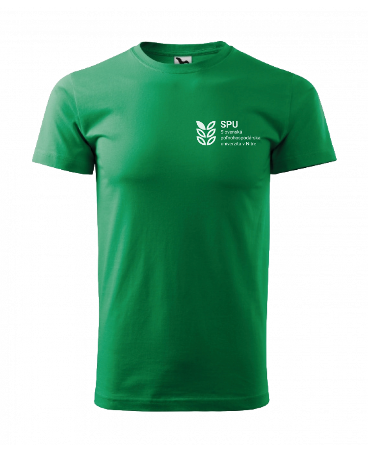 Kvalitné a pohodlné tričko vo farbe zelenej trávy s potlačou loga SPU.